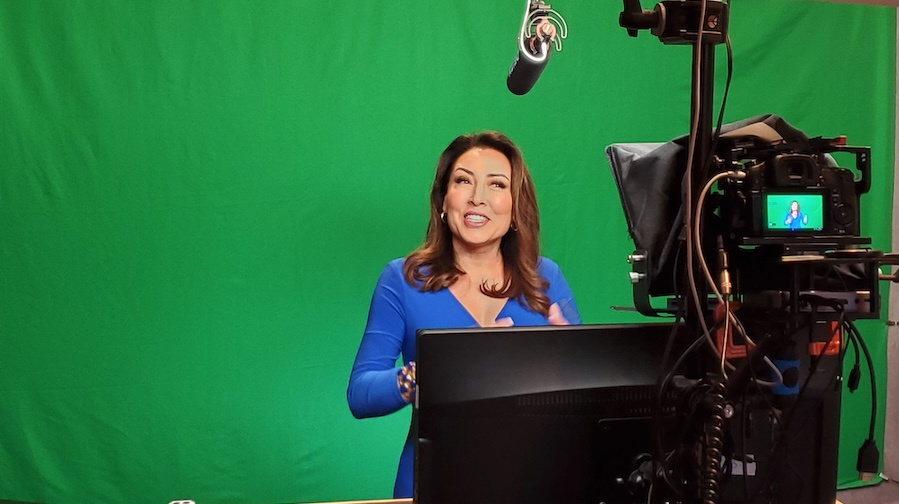 Current bookings require 2 hour minimum – this includes setup work specific to your needs, including slides, background, prompter, etc. So even if you just need to record for 15 minutes, there was work before, and afterward to prep and then return the studio to other uses.
